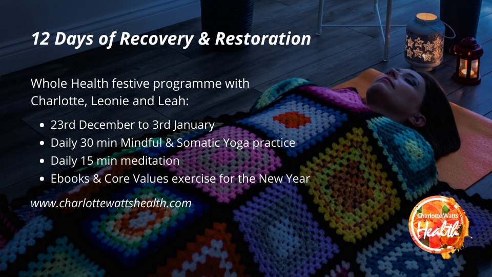 - Charlotte's monthly health webinars (and archive) with nutrition, lifestyle, moving and breathing information and advice for a variety of health topics – over 50 previous topics in the library